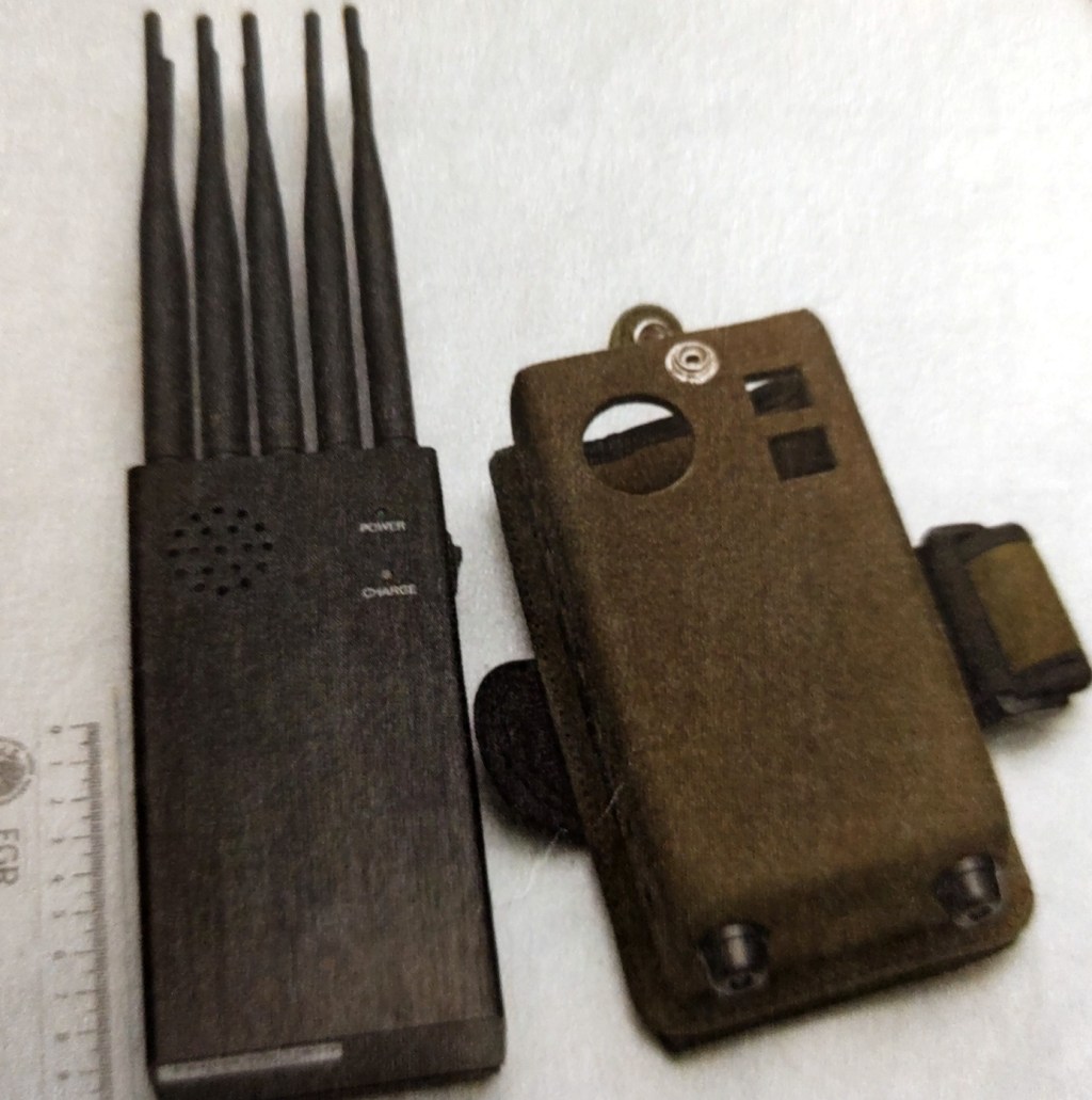 Por lo anterior, los policías detuvieron a Jaime “V” y Juan “M”, y aseguraron el tractocamión, un dispositivo inhibidor-bloqueador de señales de radiofrecuencia con ocho antenas, un trozo de cable, un trozo de listón de tela negro y un vehículo semiremolque del Servicio Público Federal.