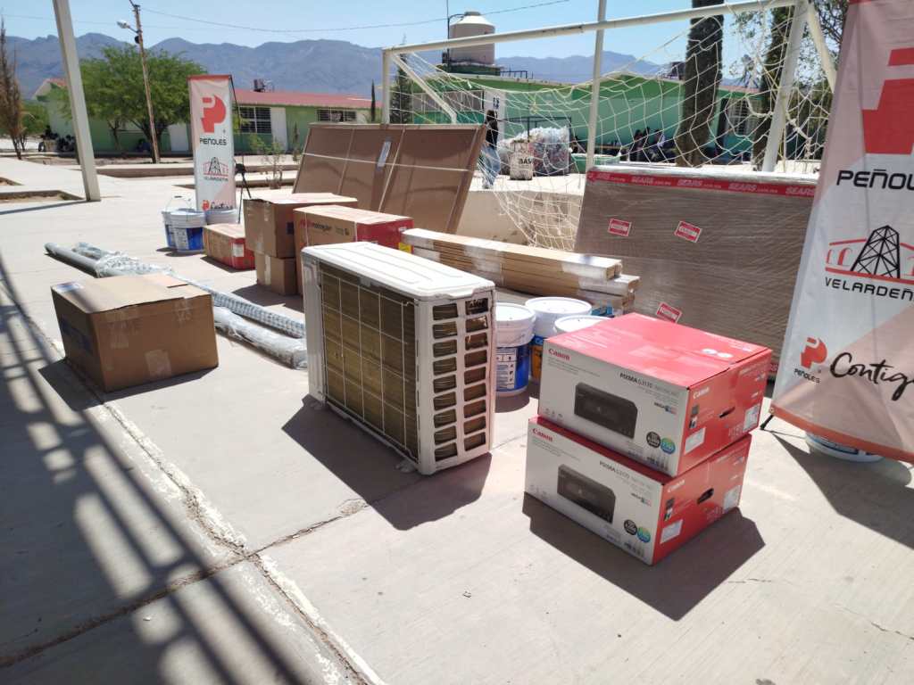 Además del equipamiento tecnológico, la solidaridad del personal de Peñoles permitió la dotación de materiales clave para la mejora de la infraestructura del aula de cómputo. Se entregaron aires acondicionados, que garantizan un ambiente óptimo para el aprendizaje, así como pintura, impermeabilizante, estanterías, cortinas y un pizarrón.
