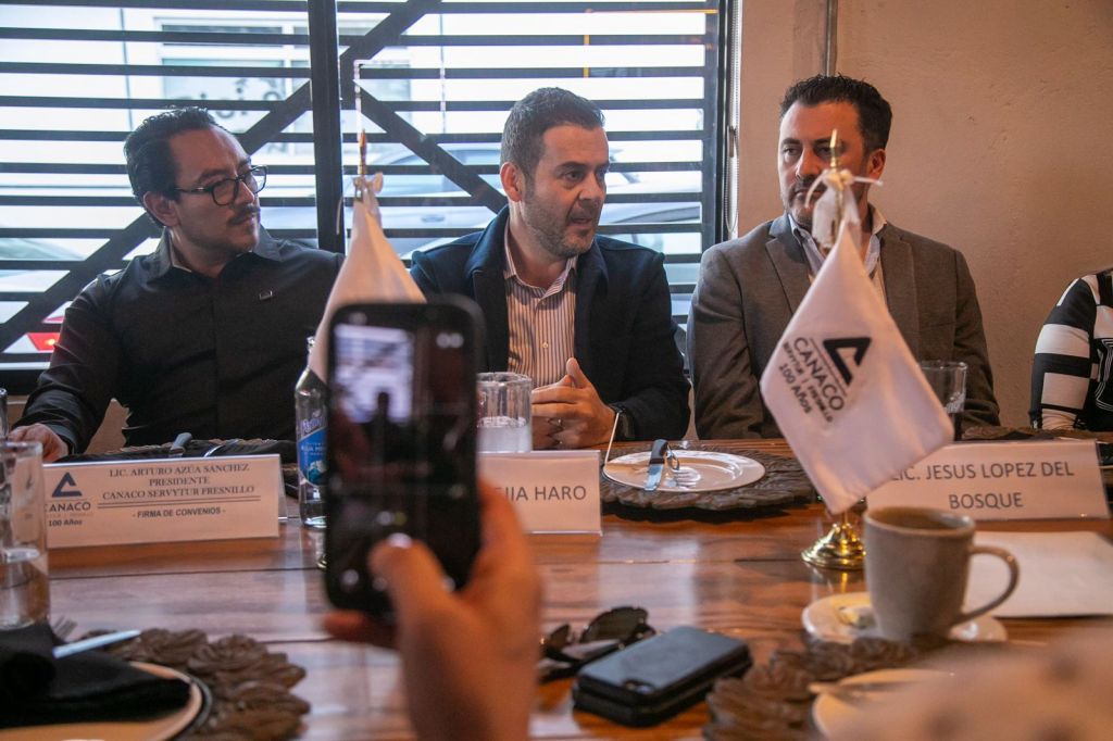 Fresnillo, Zac.- El diputado federal Ulises Mejía Haro sostuvo un encuentro con la mesa directiva de CANACO SERVITUR Fresnillo, encabezada por su presidente, Arturo Azúa Sánchez, donde refrendó su compromiso con el fortalecimiento del comercio local como base del desarrollo económico.